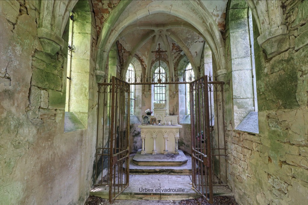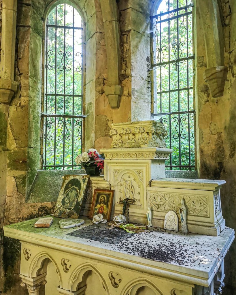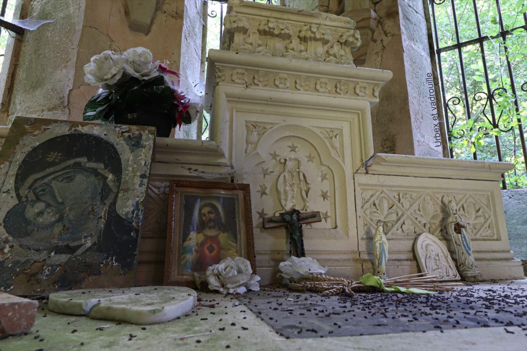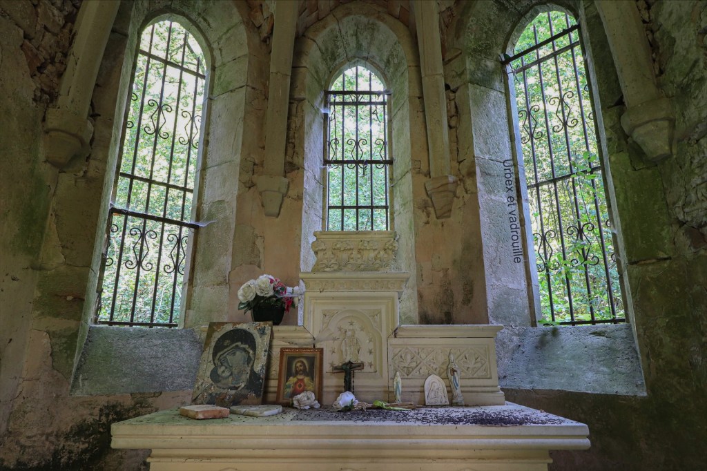 Petite chapelle perdue en forêt, il semblerait que des fidèles viennent toujours se recueillir de temps à autre.