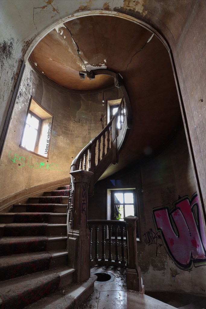 Superbe château qui tombe malheureusement en ruine. Je n’ai trouvé aucune information concernant la date de construction ni même la date de l’abandon. Ce château nous réserve un somptueux escalier en bois ainsi qu’une chapelle proche des bâtiments annexes.