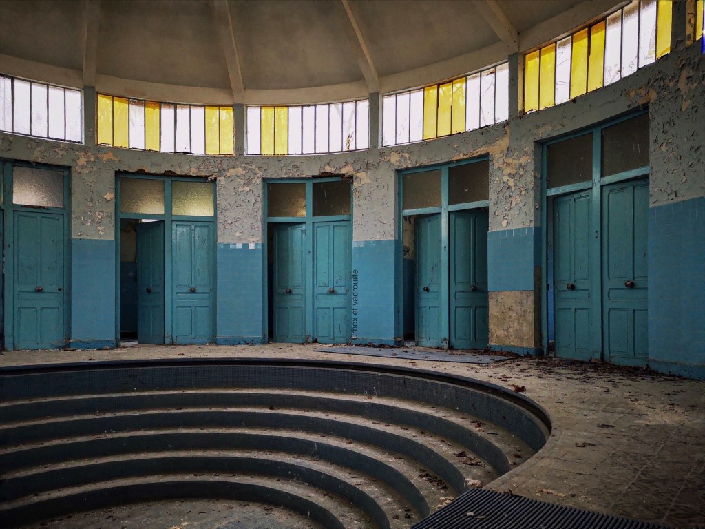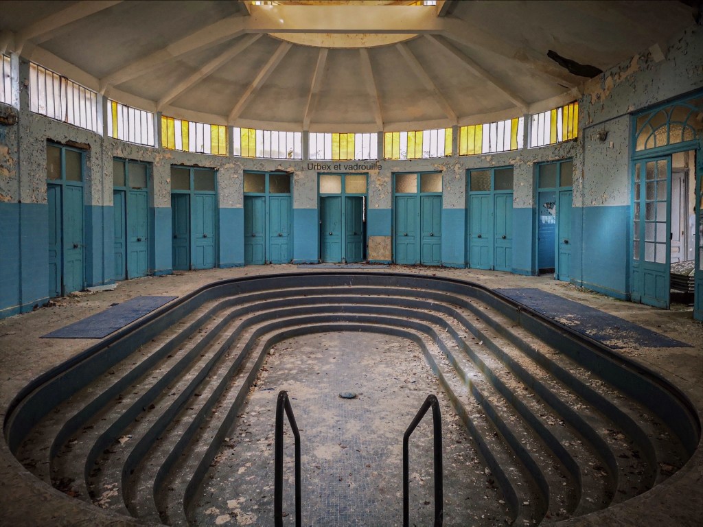 Abandonné dans les années 80 cet ancien établissement thermal reste figé dans le temps. Ce bleu envoûtant, cette moisissure et cette peinture écaillée sont les signes distinctifs de ce lieu.